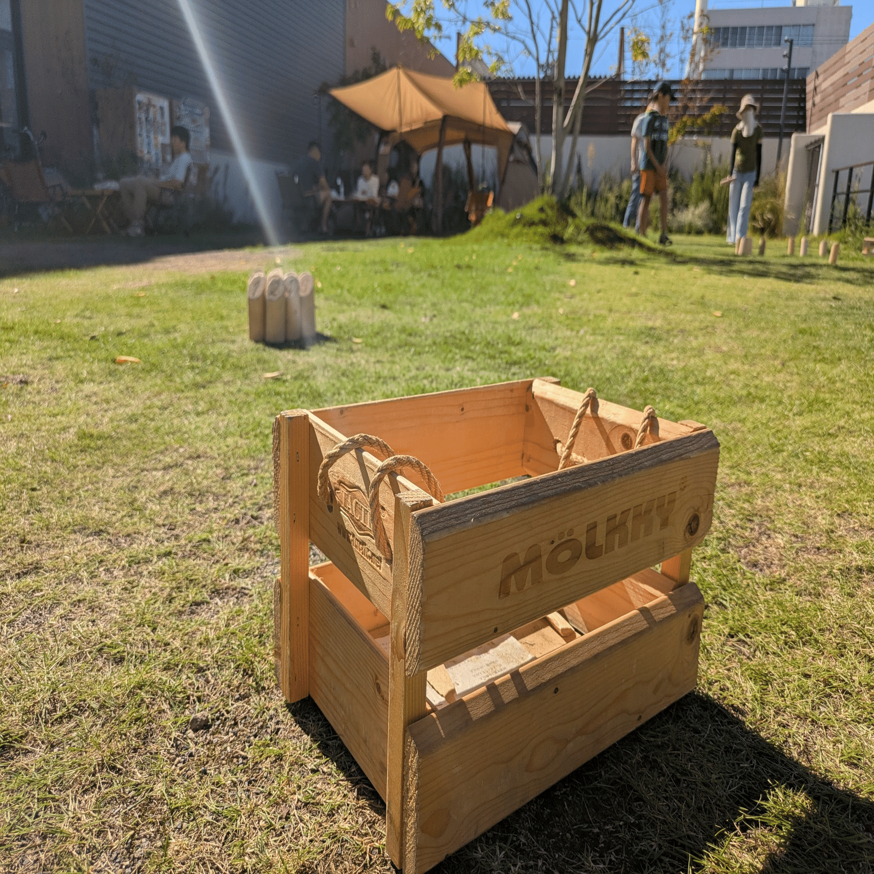 木製のピンを倒して得点を競うシンプルながら奥深いゲーム。子どもから大人まで楽しめるため、家族連れにも大人気です!!