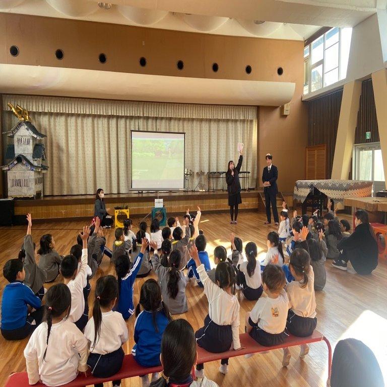 スタッフにも感想を聞いてみると、「多くの園児、先生方に参加頂きましたが温かく迎えてくださり、楽しく開催が出来ました。園児の皆さんも真剣な眼差しでスクリーンに映し出される動画を見ながら、積極的に質問に回答する姿がうかがえ楽しみながら学んでもらえた様に感じました。」
