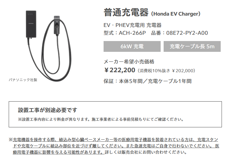 詳しくはこちら>>https://www.honda.co.jp/ACCESS/charging_powersupply/evcharger/