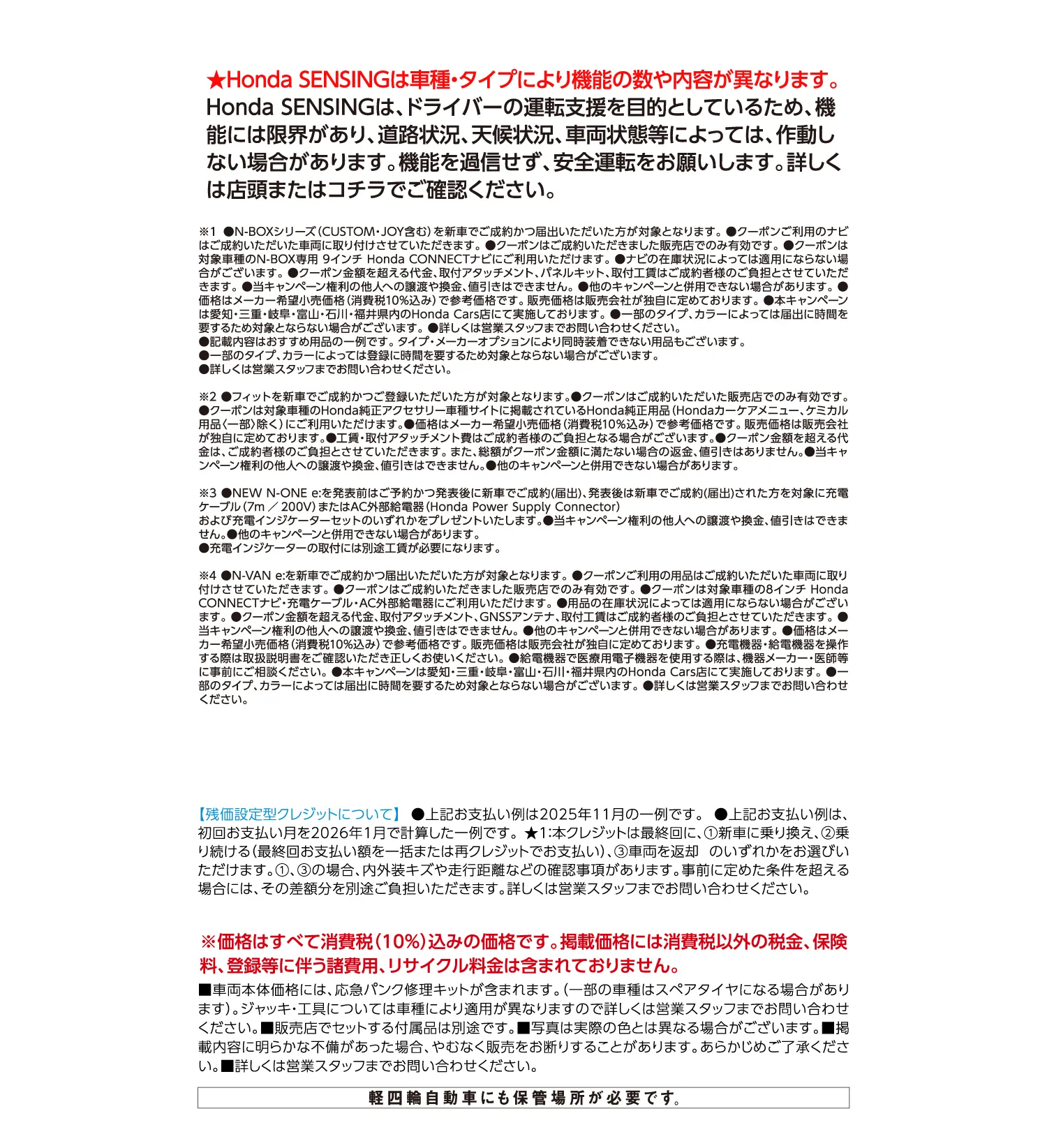 Honda N-ONE e:対象の残価設定型クレジットキャンペーン—実質年率2.5%