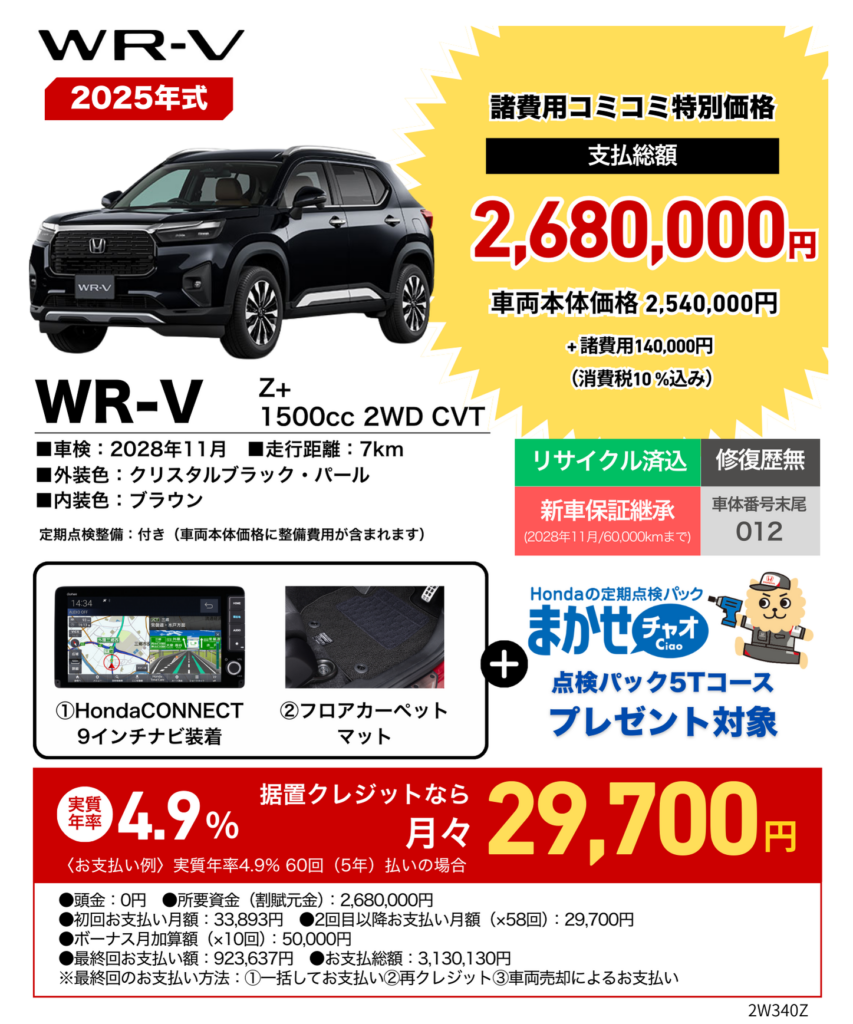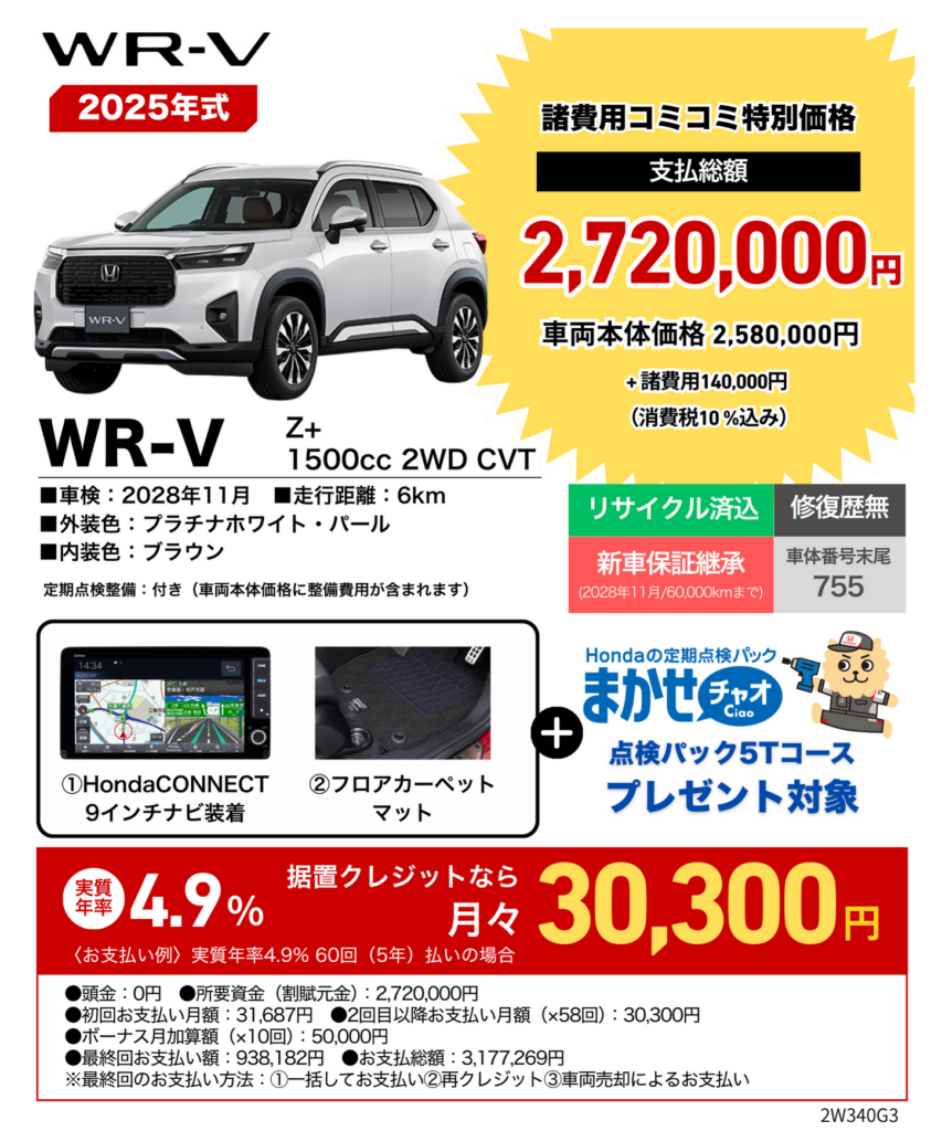 WR-V登録済未使用車キャンペーン