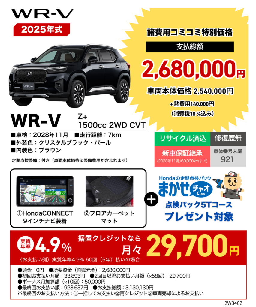 Honda SUV WR-V。お求めやすい価格でご用意しました!