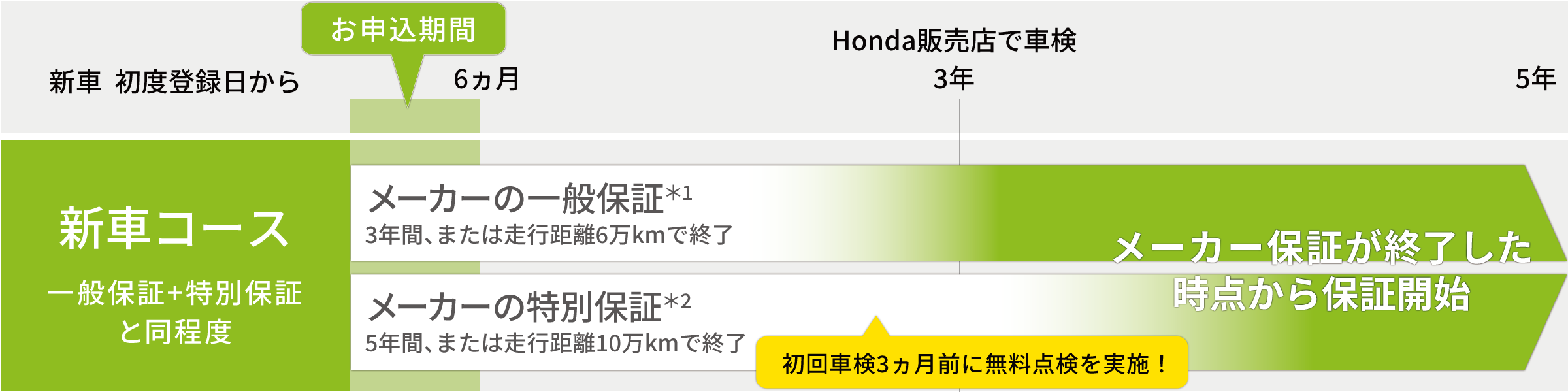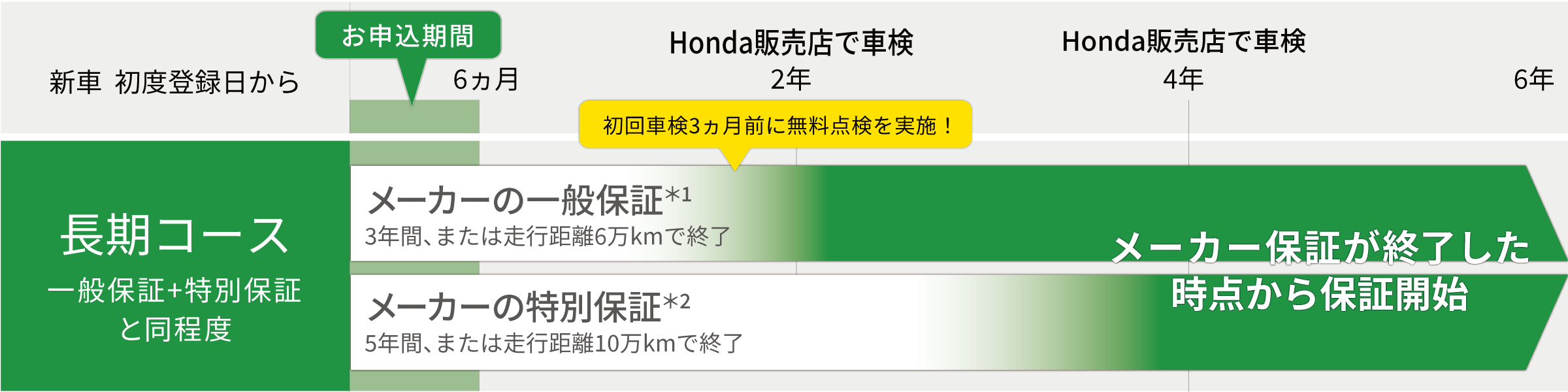 新車購入時にご加入できるコース。初度登録日から延長保証で6年まで保証が続きます。