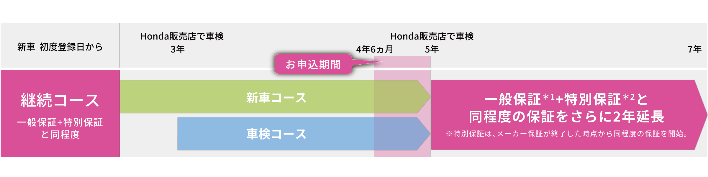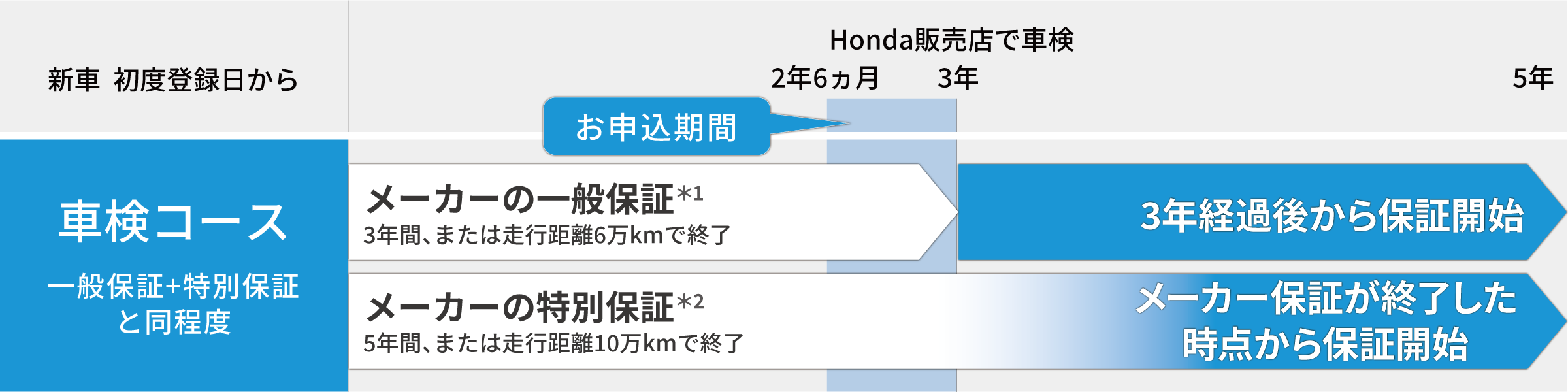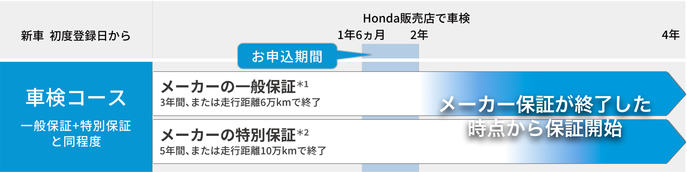 ●「車検コース」「継続コース」はHonda販売店で車検または保証開始前点検(有料)を受けていただくことで、ご加入いただけます。