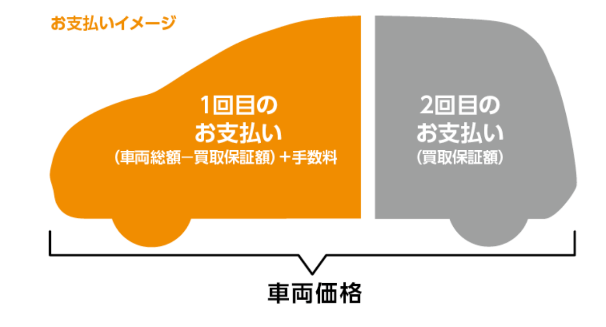 あらかじめ契約満了時の買取保証額を設定し、購入時と契約満了時の2回に分けてお支払いいただくプランです。契約期間は3年または5年を選べます。
